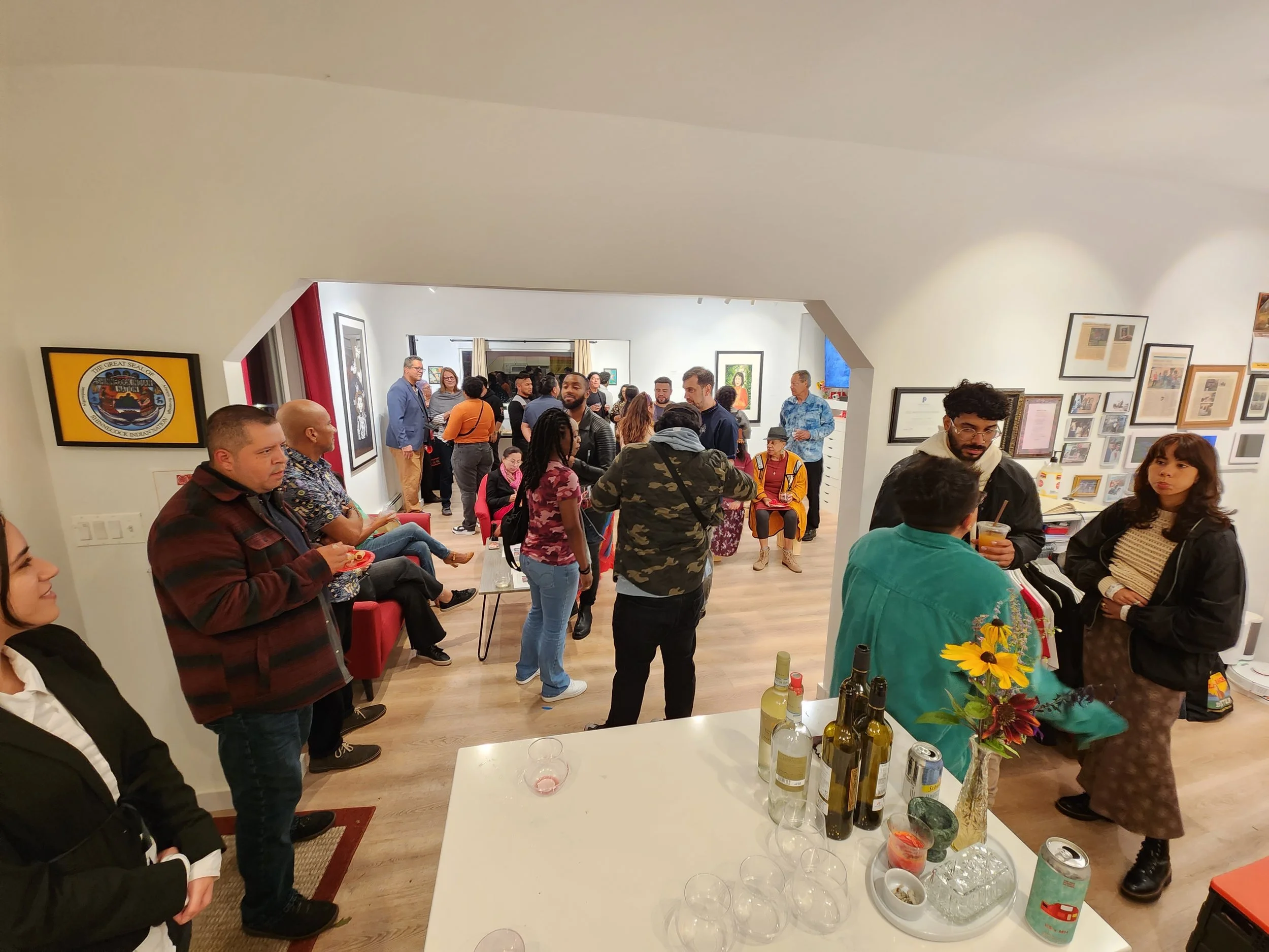 We invite you to take a moment and glance through the photos in the gallery below to catch a glimpse of the vibrant opening of “Entre Mis Mundos.” Gutierrez’s art consistently attracts a diverse crowd, eliciting an array of reactions that reflect the richness of her work. The reception was truly overwhelming, with extensive support pouring in from her fans, friends, and family. People gathered from all corners of New York and Long Island, converging in a cozy red house to experience the vibrant, cultural, and deeply emotional art created by Sueey Gutierrez.